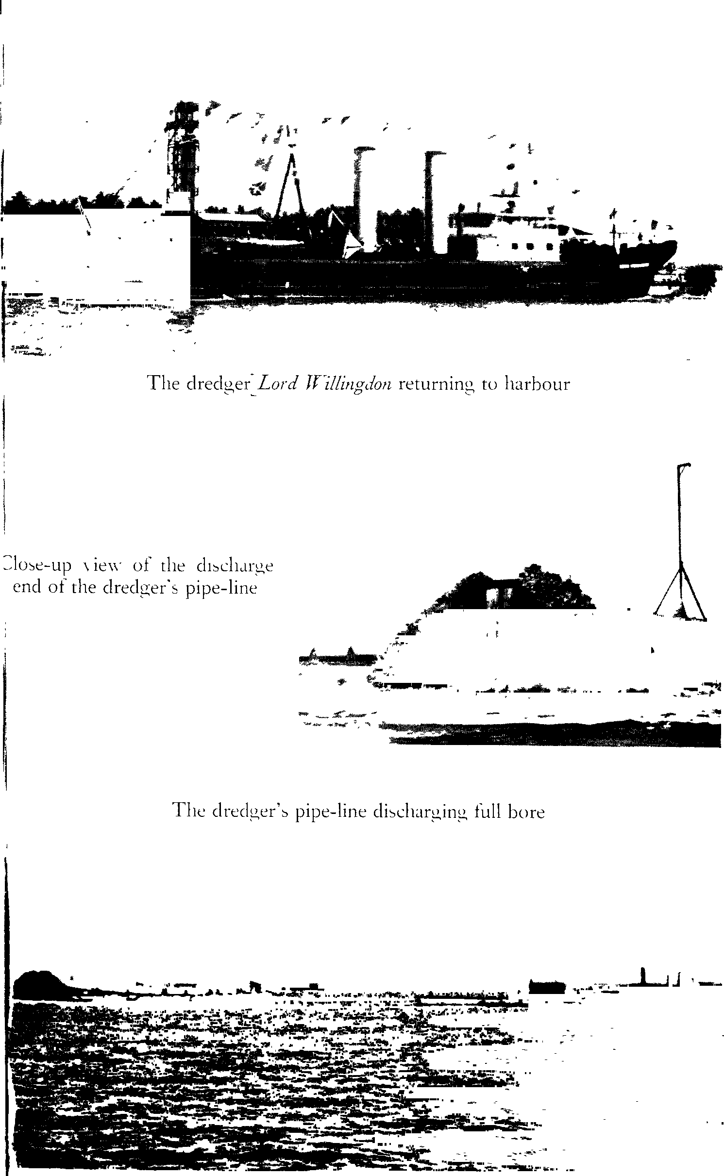 The dredger’s pipe-line discharging full bore