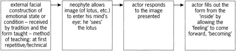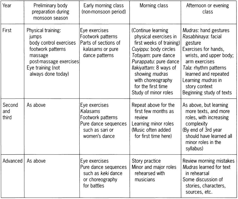 training 65–87, 90, 92; basic (first year) 73–81; body preparation and exercise 72–3; breath-ing and energy 93–5; importance of Kottayam plays for 83–7, 118; initiation 70; intermediate and advanced 81–3; as male privilege 70; process and structure 68–72; selection procedure 69–70