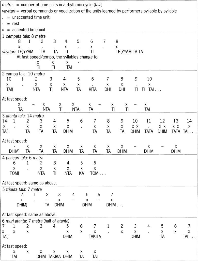 rhythmic patterns see tala